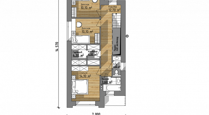 Проект «Правильный дом 5920» площадью 126 м2 — отличный вариант недорогого и комфортного жилья для вашей семьи. В двухэтажном доме (размером 7 x 15 м) выполнено удачное зонирование планировки и для каждого предусмотрены необходимые комнаты. В проекте 5 жилых комнат, которые можно использовать для спальни или отдельной игровой зоны для ребенка.