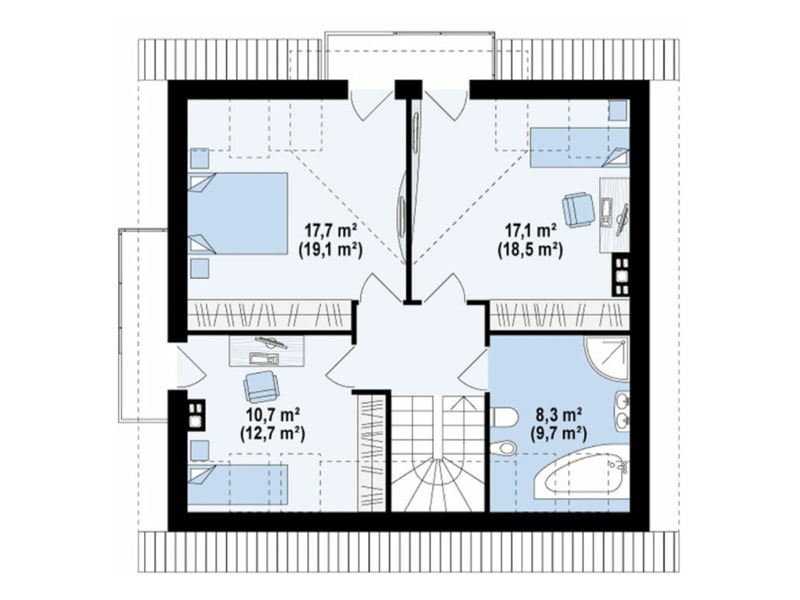 - Устройство стропильной системы с покрытием металочерепицей, утеплением (базальтовые плиты плотностью 35 кг/м3) и паро-гидроизоляцией с использованием супердиффузионной мембраны