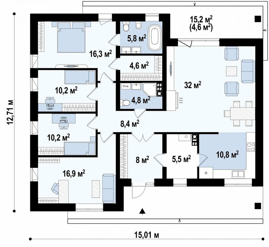 - Отделка фасадов (керамический кирпич или декоративная штукатурка)